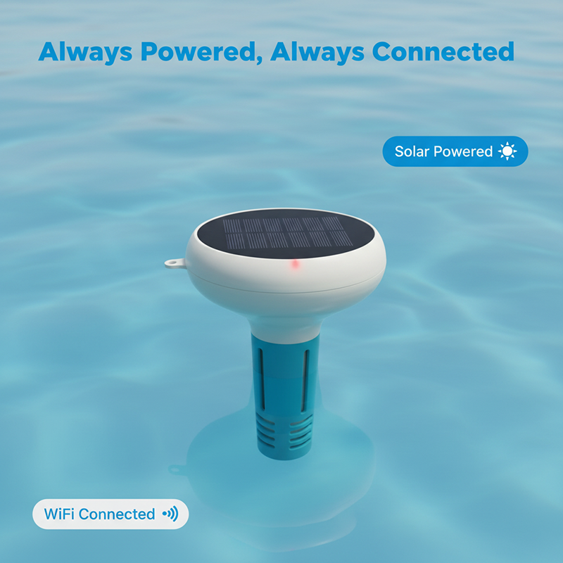 Moniteur de qualité de l'eau de piscine sans fil WiFi YINMIK à énergie solaire, précision 0,1 pH, détection du chlore résiduel, ORP, température