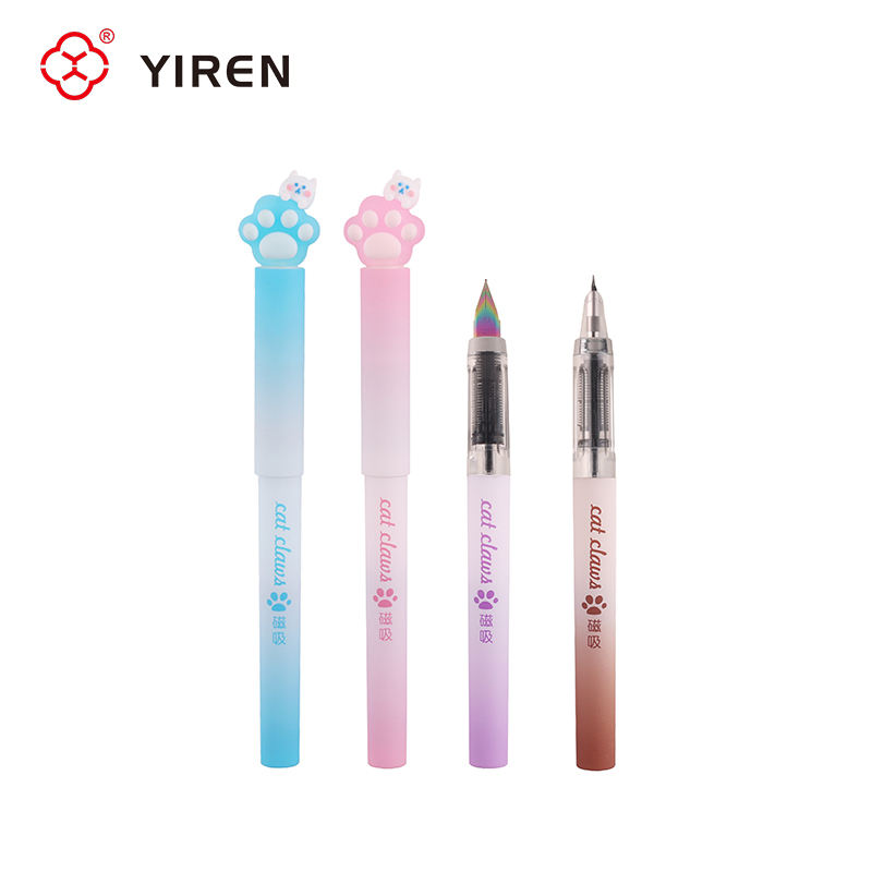 Stylo plume magnétique en plastique YIREN, motif dessin animé amusant, avec embout en silicone 3D en forme de patte de chat, prise en main confortable, cadeau idéal pour les fournitures scolaires