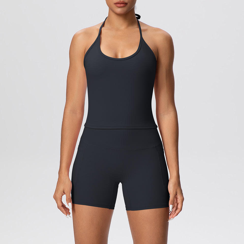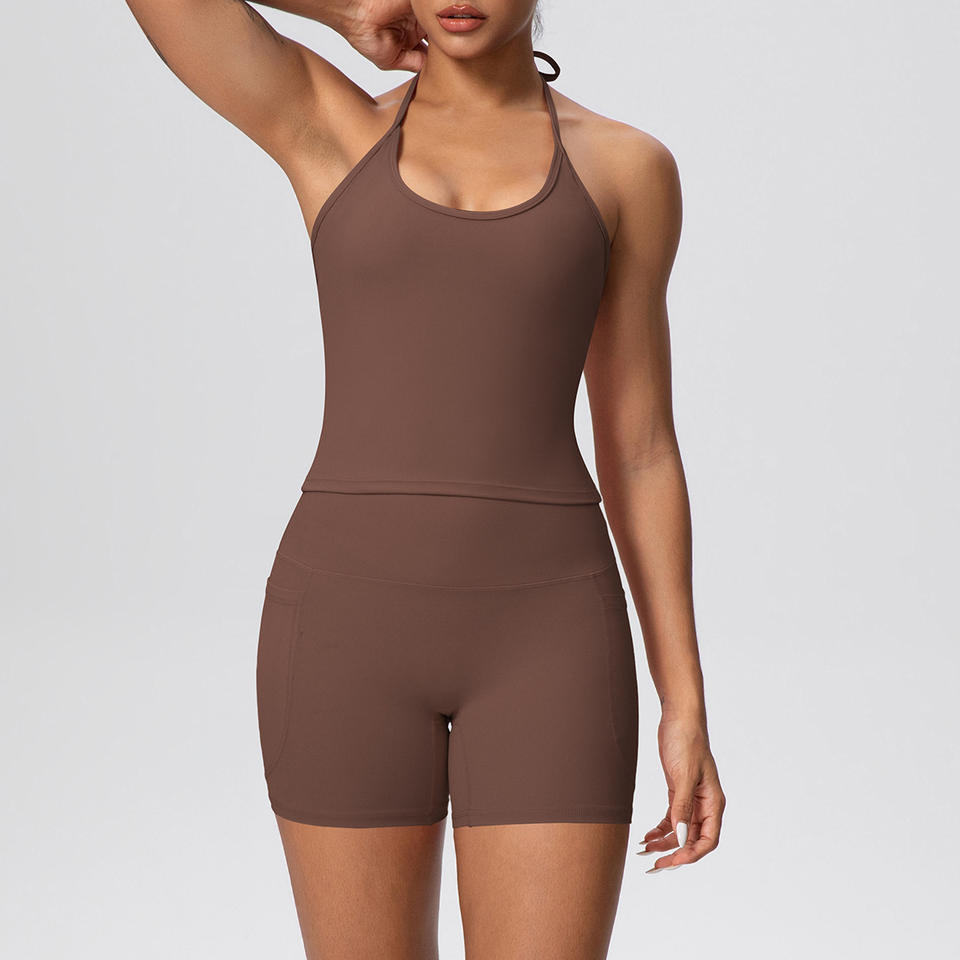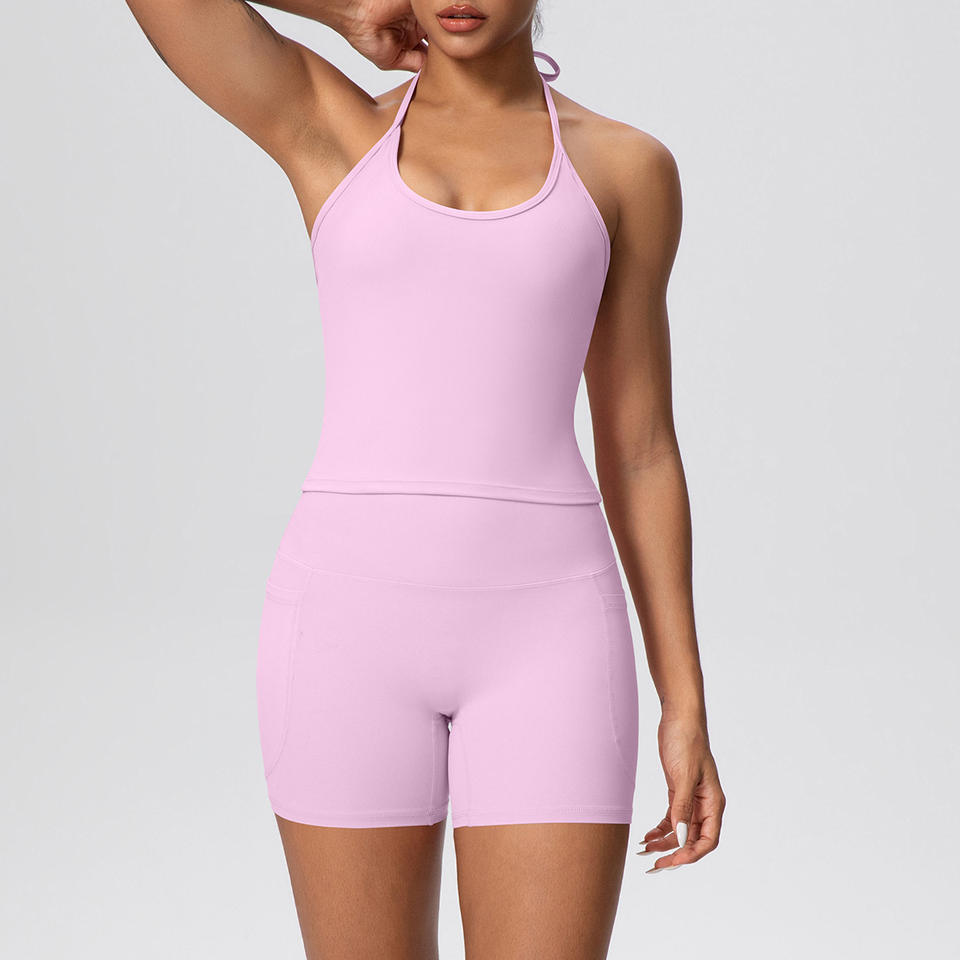 YIYI Lot de 2 ensembles de yoga pour femmes, effet push-up fessier, col en U, dos nu à nouer, taille haute, contrôle du ventre, avec soutien-gorge de sport et coussinets