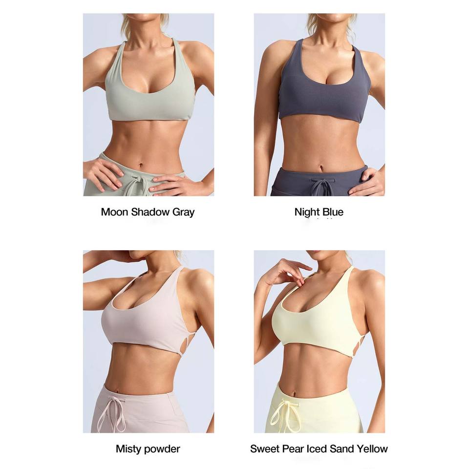 YIYI Haut de sport pour femme à col licou, sans armatures, dos élégant, sensation de seconde peau, confortable, respirant, séchage rapide, soutien-gorge de yoga