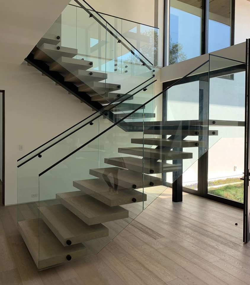 marche d'escalier:verre/bois