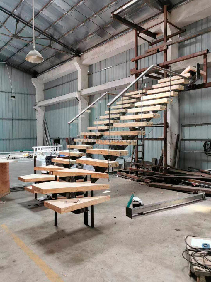 YL METAL Escalier Intérieur Droit ou Hélicoïdal Sur Mesure en Acier Inoxydable Avec Marches en Bois et Garde-Corps en Verre