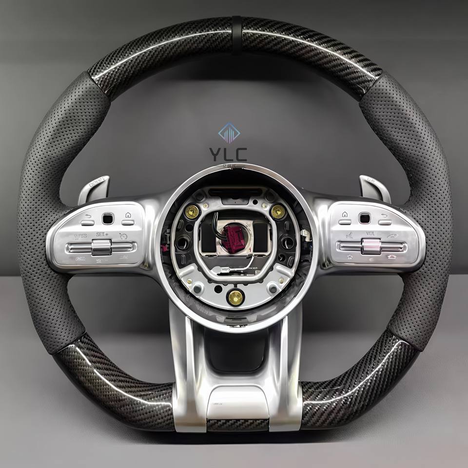 Volant de course en fibre de carbone LED personnalisé YLC pour Mercedes-Benz AMG W205 15-18