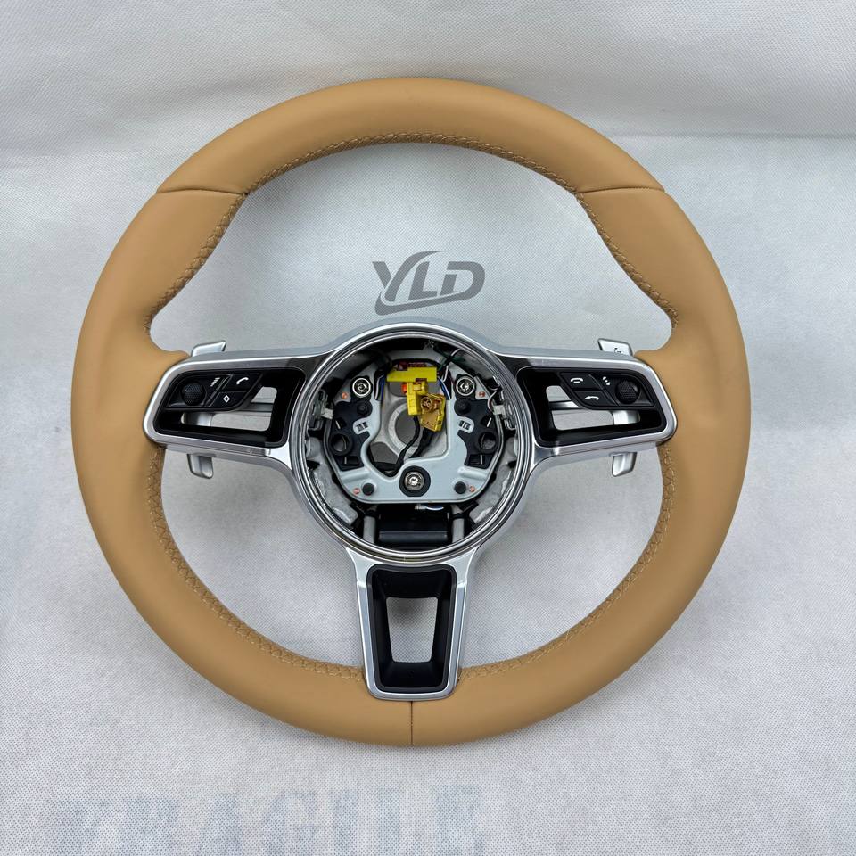 Volant plat en cuir véritable au prix d'usine YLD pour Porsche Mancan Panamera Cayenne 911 718 991 Volant personnalisé