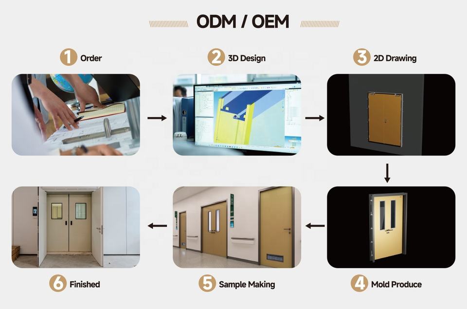 Portes en acier modernes YONKING pour salles blanches, ateliers, écoles, hôpitaux et environnements médicaux, faciles à nettoyer
