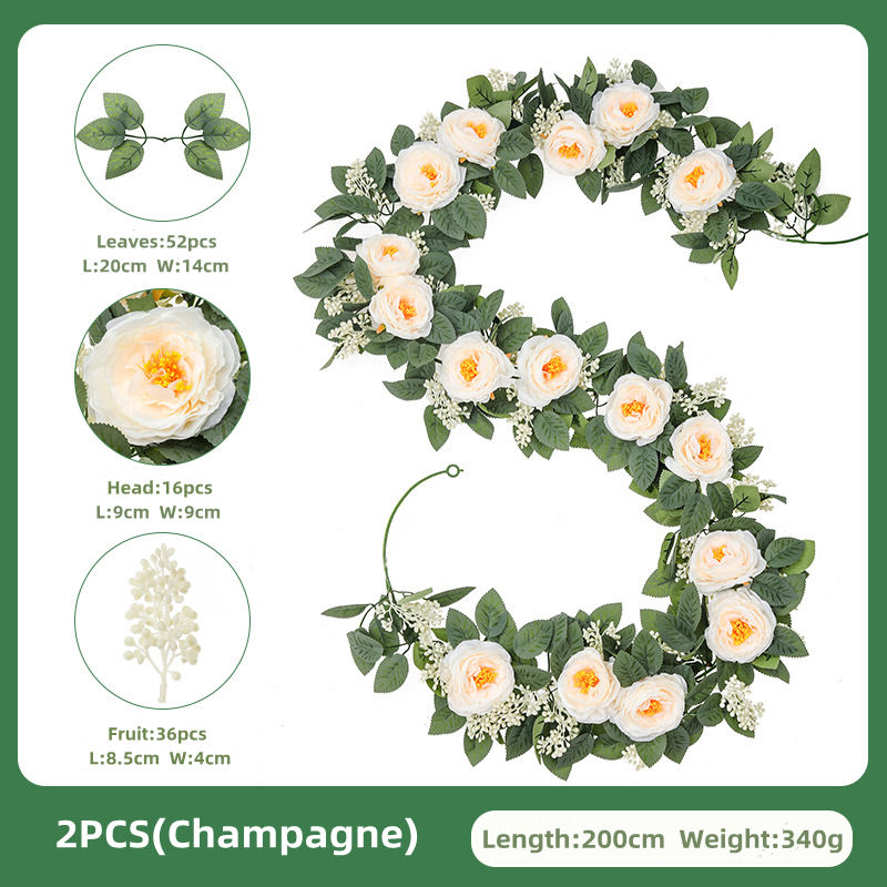 Nom du produit:Guirlande de vignes de rose de soie pour la décoration Guirlandes de fleurs de pivoine blanche