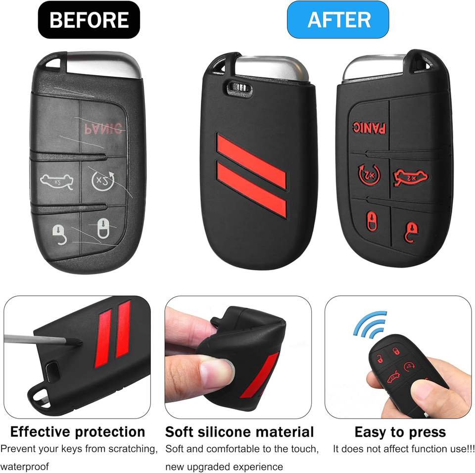 YOSRTER Coque de protection rouge pour clé de voiture, porte-clés pour Dodge Charger Durango Dart, télécommande 4 boutons ABS+métal