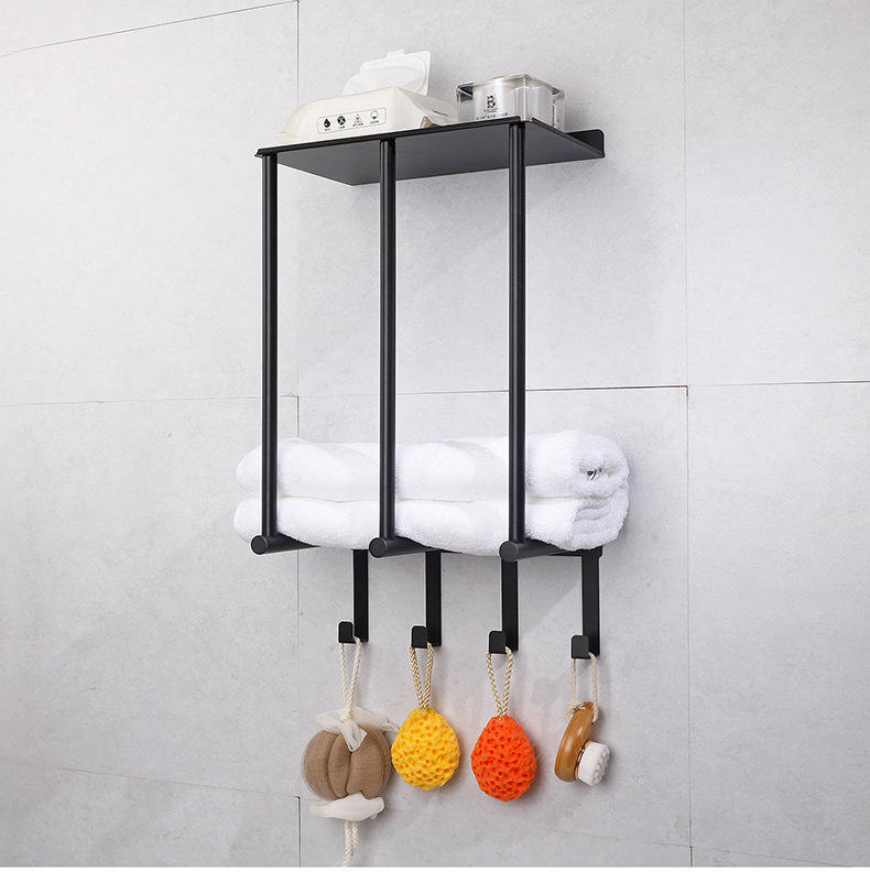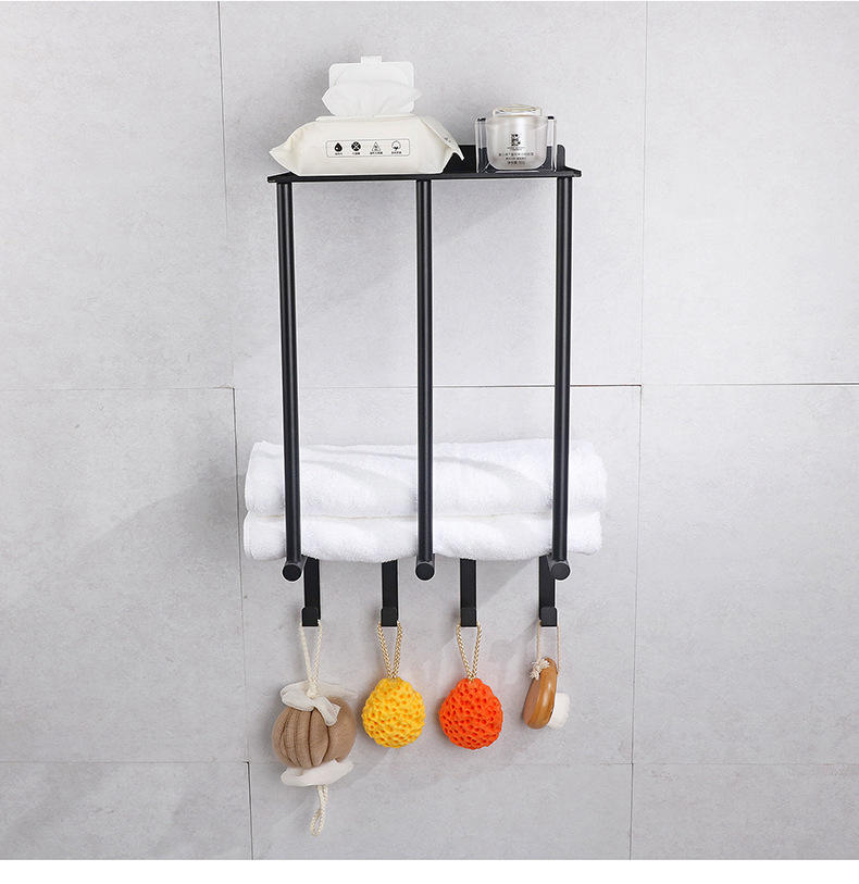 Porte-serviettes de salle de bain mural YOTO avec étagère en fer 3 crochets organisateur de stockage de bain serviettes roulées échelles supports