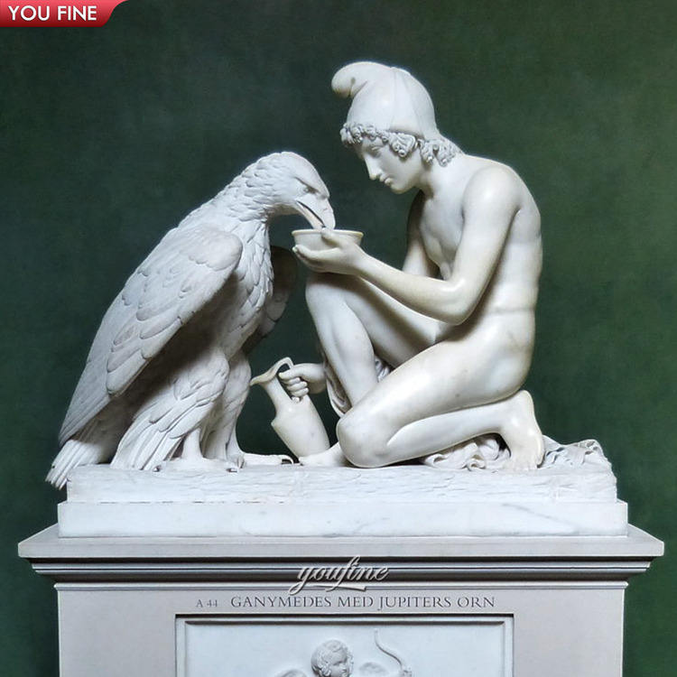 Statue de Zeus et de Ganymède en marbre blanc naturel sculpté à la main sur mesure YOUFINE