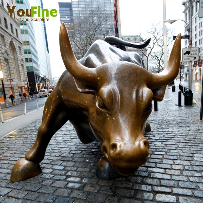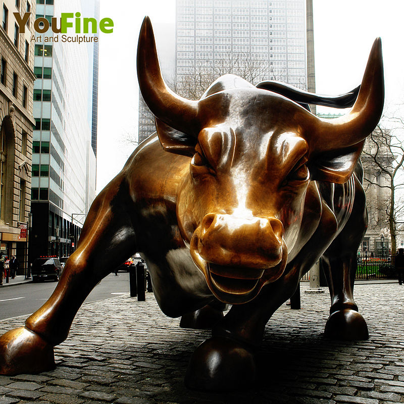 YOUFINE Grande statue de taureau de Wall Street en bronze, sculpture animale grandeur nature, faite à la main, pour jardin extérieur