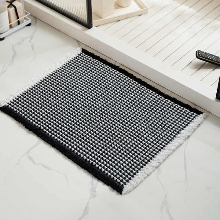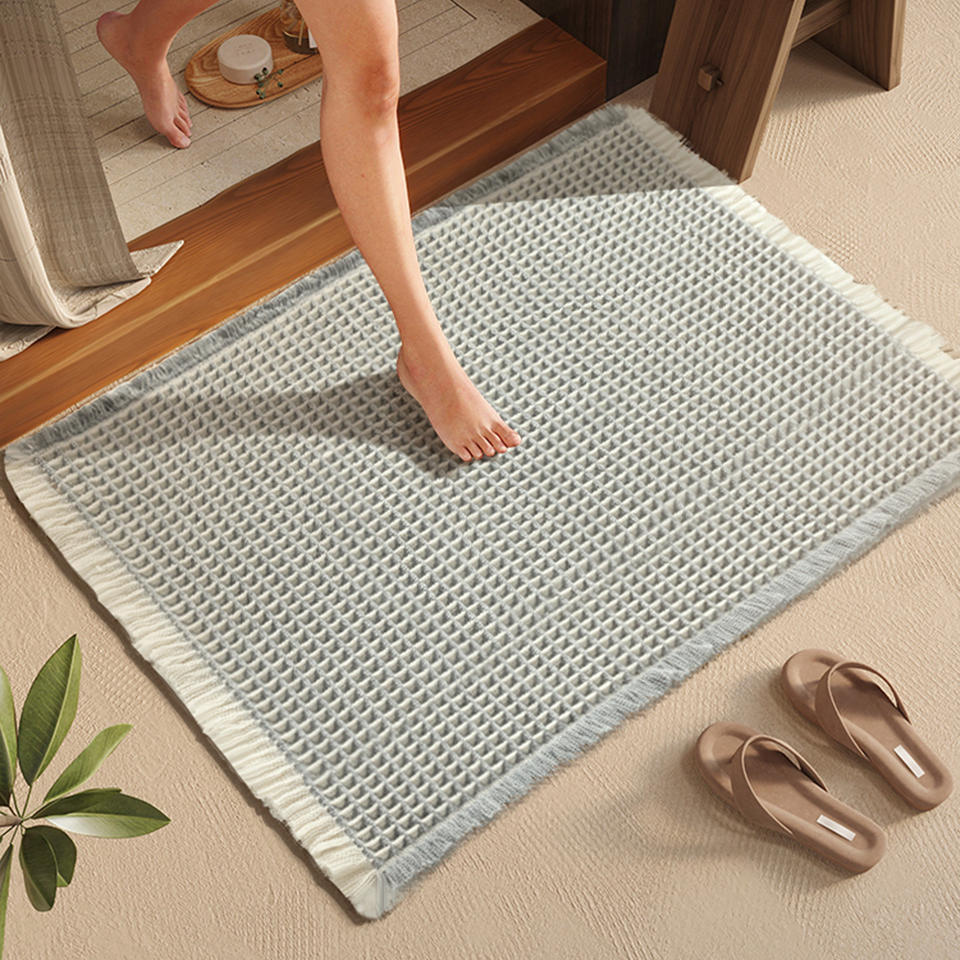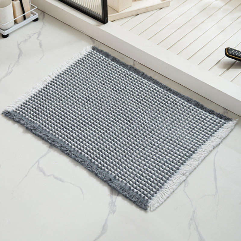Tapis de bain YOULTTAN en tissu gaufré absorbant, ultra doux, antidérapant, lavable en machine, avec pompons, pour salle de bain