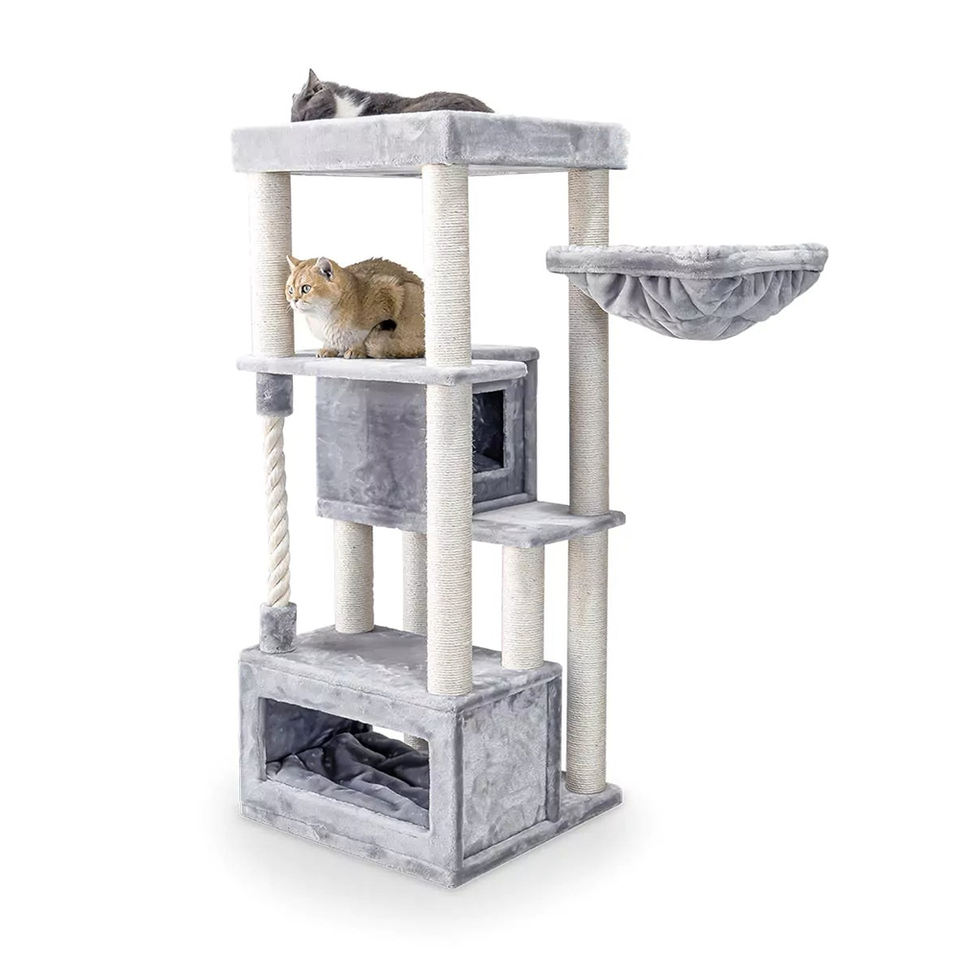 YOUME OEM Design Grey Cat Tree Tower Hamac de 150cm d'épaisseur et maisons doubles pour toutes les races de chats une maison de chat à l'intérieur