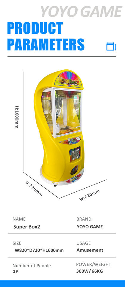 YOYO GAME Super Box2 Mini Boxing 6 Years+ Coin Operated Claw Crane Machine Plastic Doll Grabber 1 Year Warranty Game Center