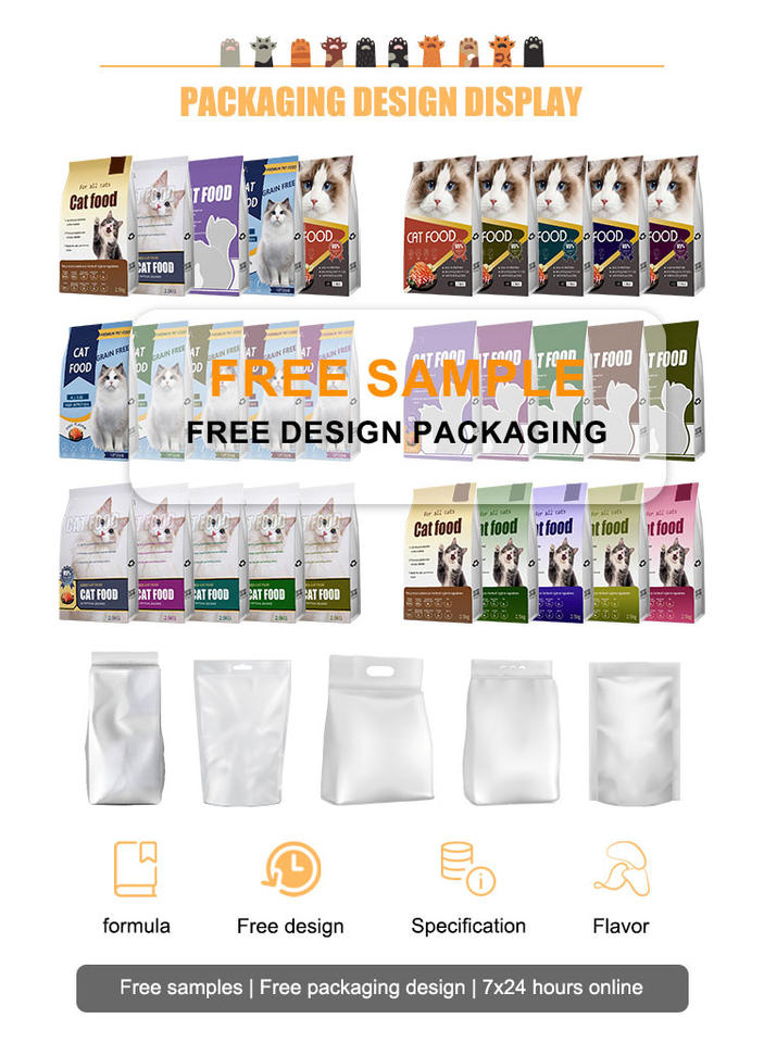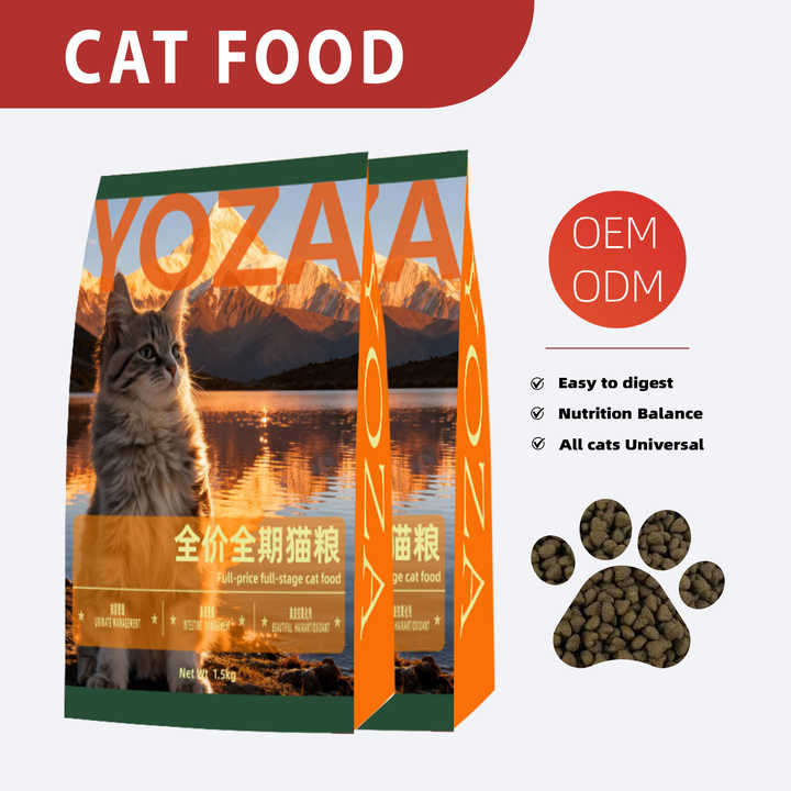 YOZA OEM ODM Nourriture pour chats personnalisée, riche en protéines, faible en matières grasses, saveurs variées, granulés ronds, soin des articulations et de l'intestin, tous âges, beauté du pelage, vente chaude en usine