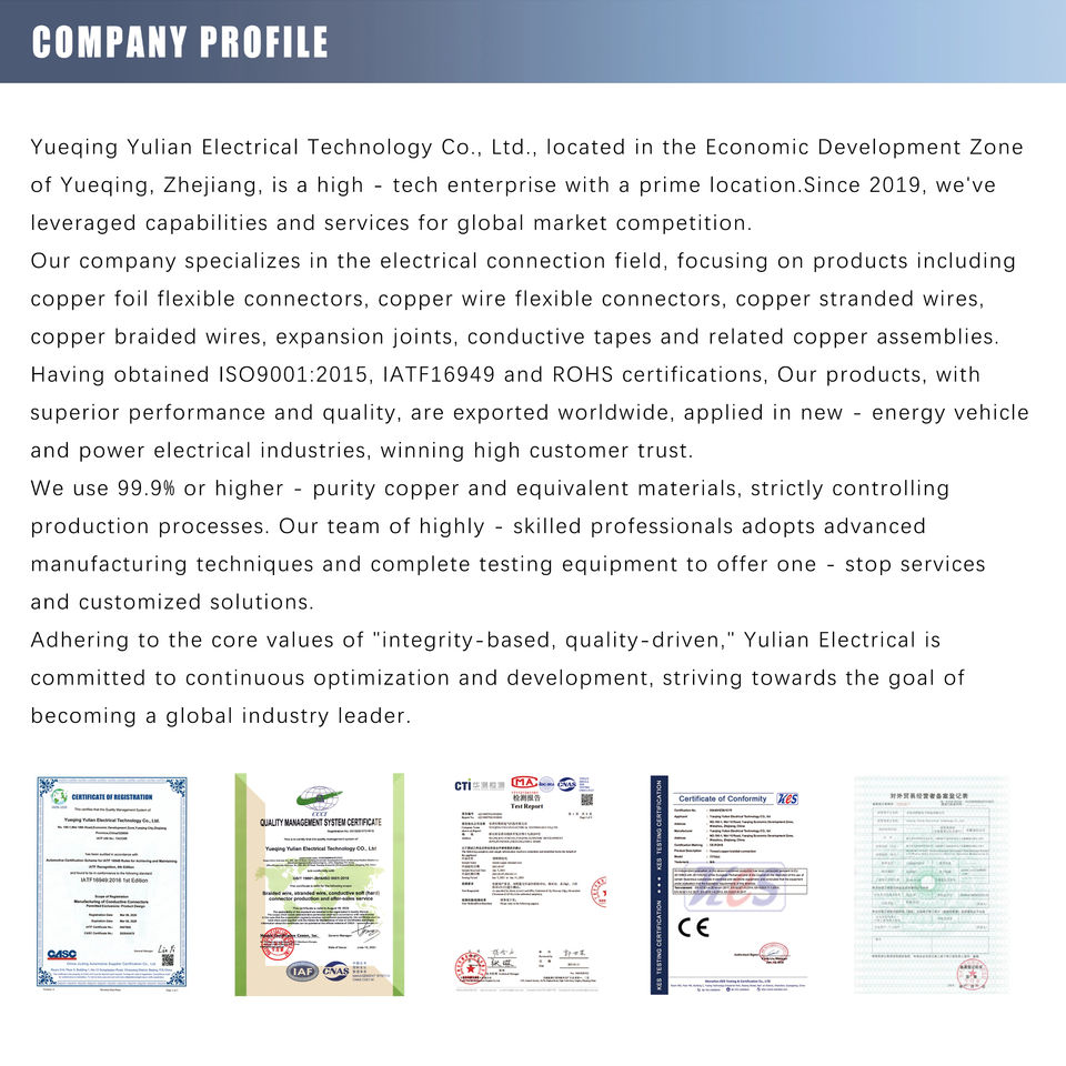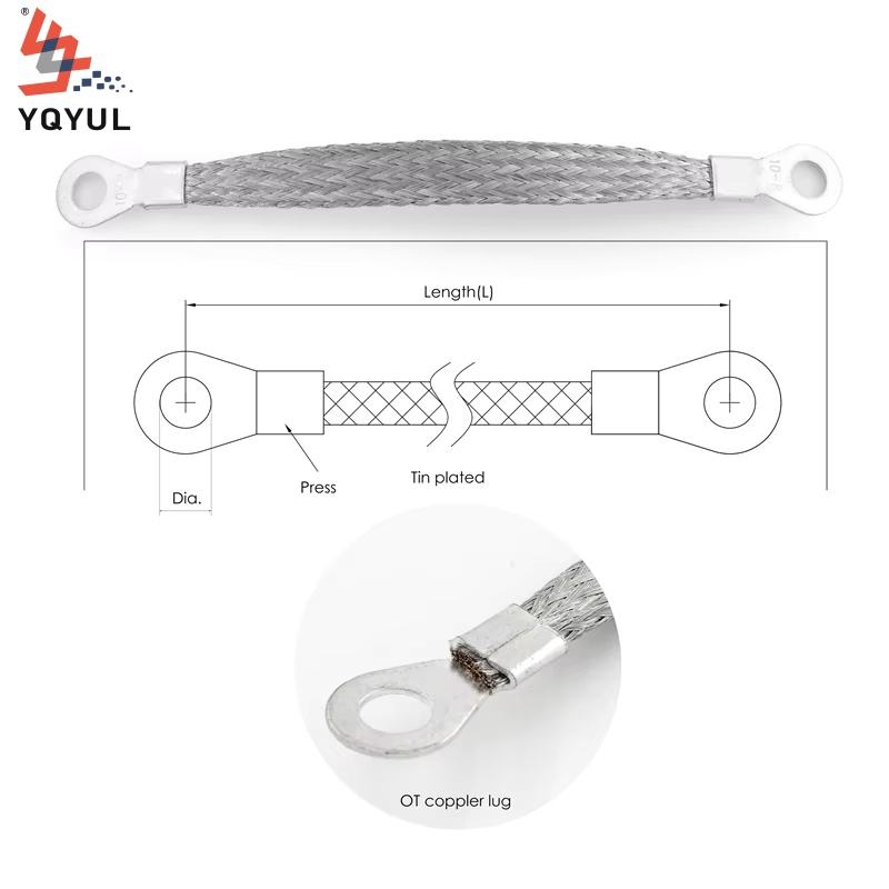 Sangle tressée en cuivre étamé personnalisée YQYUL - Connecteur de mise à la terre électrique flexible avec embout OT