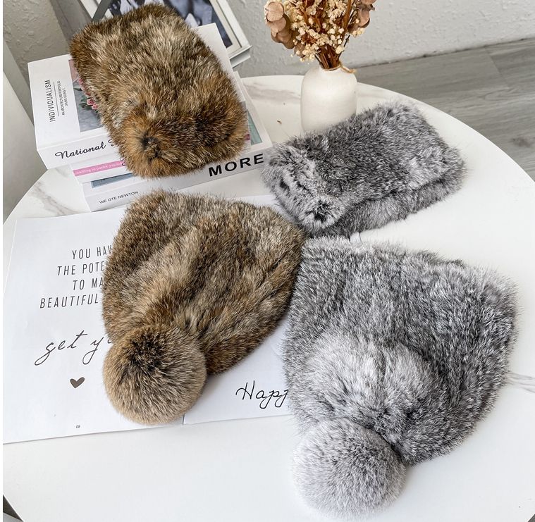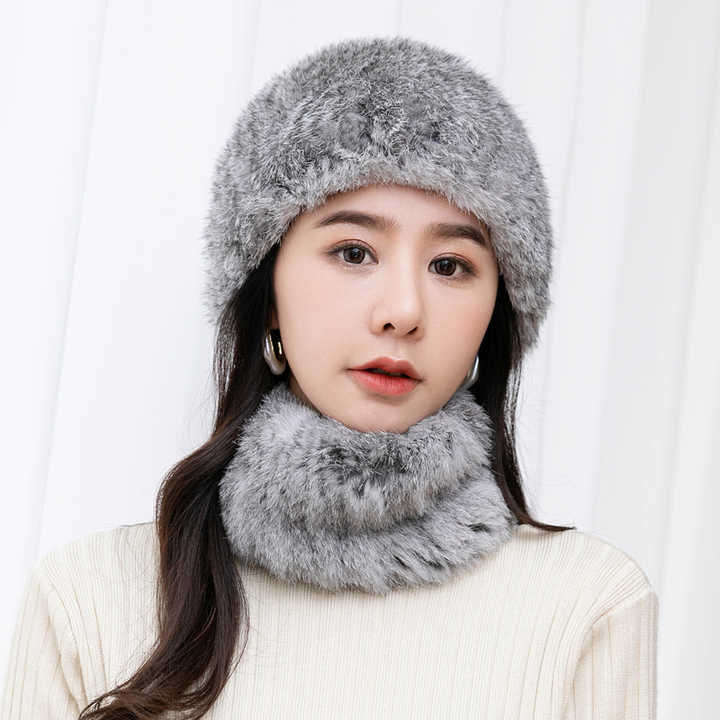 Nom du produit:Vrai ensemble de chapeau de snood de fourrure de lapin
