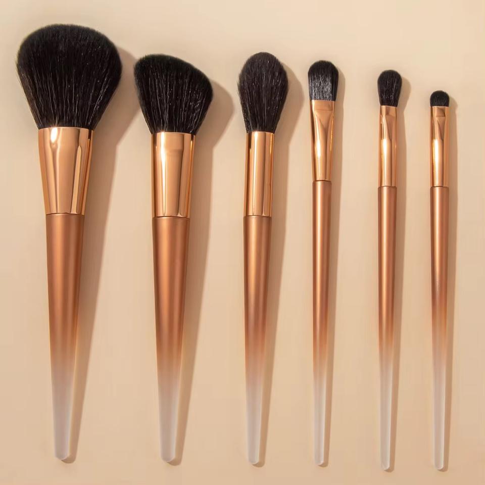 YRX Ensemble de 6 pinceaux de maquillage personnalisés avec logo, ferrules en aluminium, manche en plastique nacré, pinceaux de maquillage dorés, kit de pinceaux de maquillage de luxe