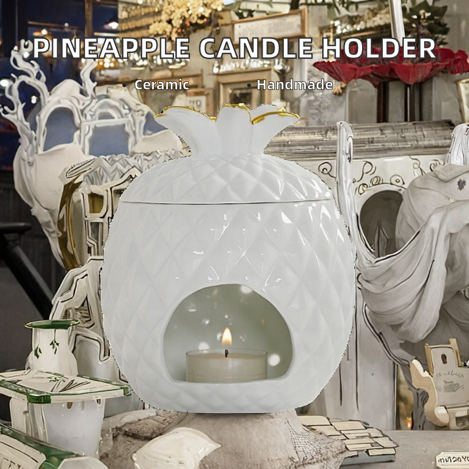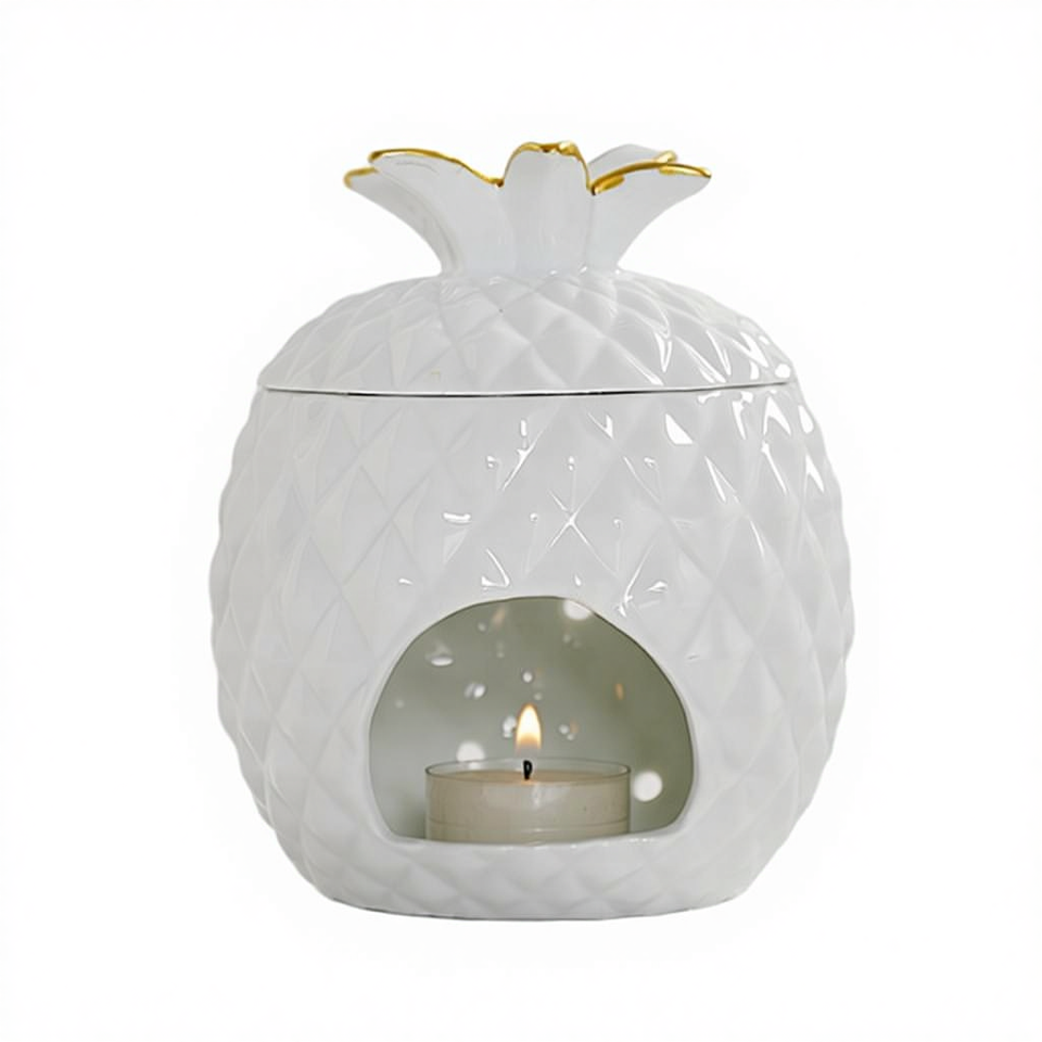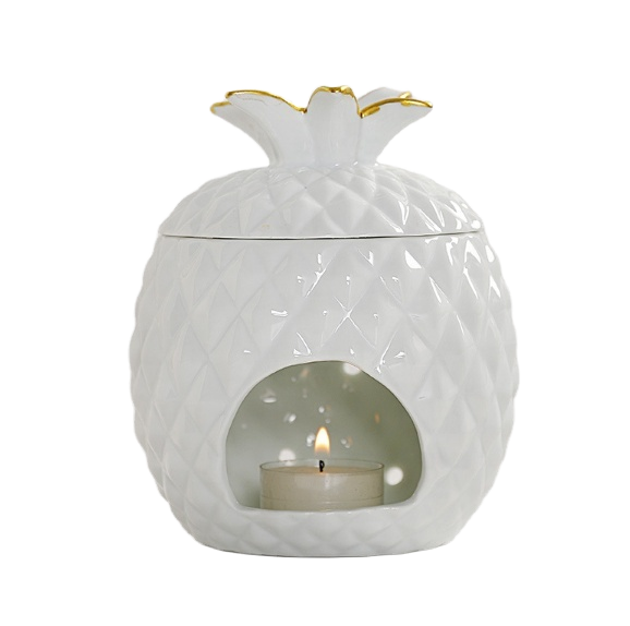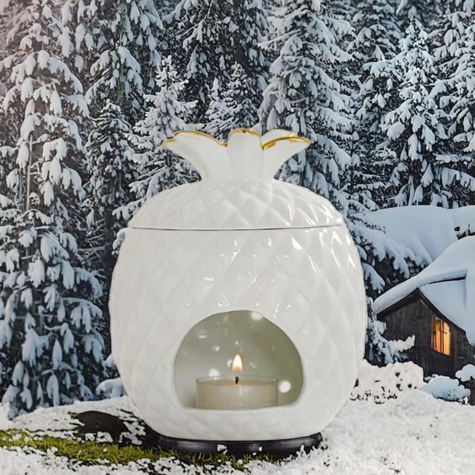YS Porte-bougie chauffe-plat en céramique fait main en forme d'ananas, brûleur de cire fondue, diffuseur d'huiles essentielles, décoration de Noël pour la maison