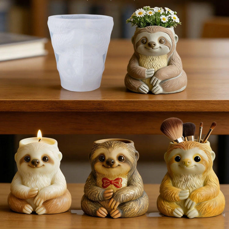 Moules en silicone pour bougies en forme d'animal paresseux YS, boîte de rangement en plâtre, moule de coulée, fournitures de fabrication de pots de fleurs en béton DIY