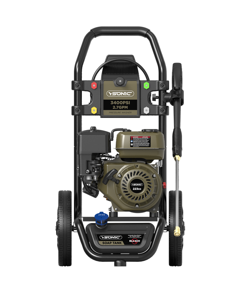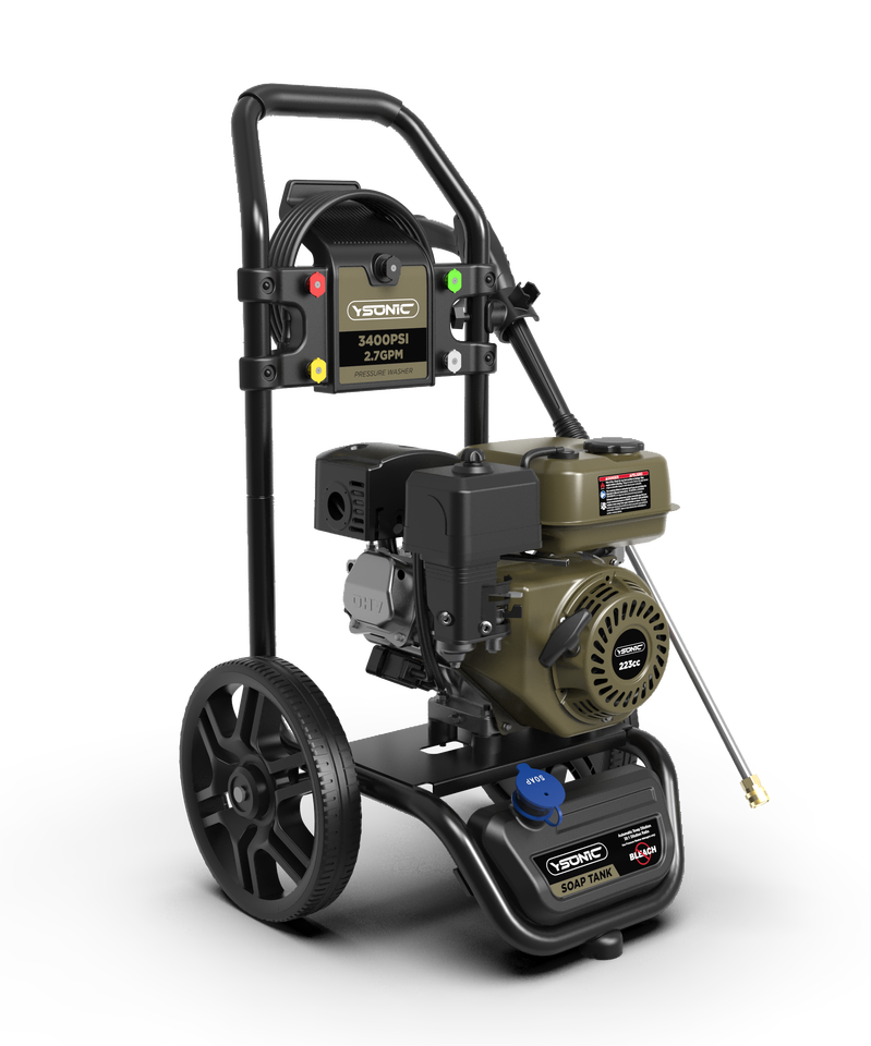 Nettoyeur haute pression à eau froide YSONIC 13HP 3400 PSI avec moteur à essence, pompe triplex et démarrage par lanceur métallique