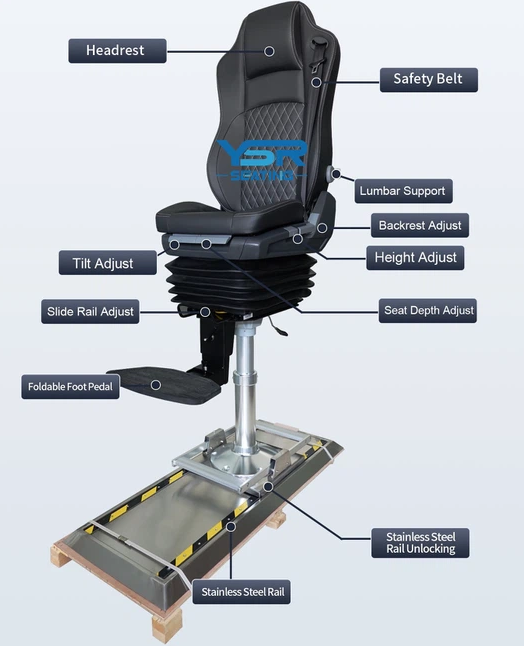 Siège de bateau YSR, réglable, imperméable, en acier inoxydable, avec rail coulissant, en tissu et cuir PU