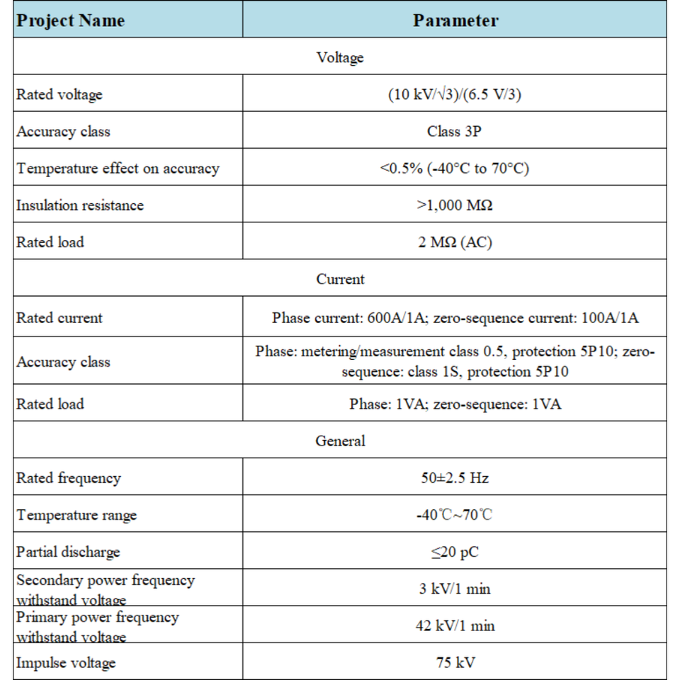 Tension nominale:(10 kV/3)/(6,5 V/3)
