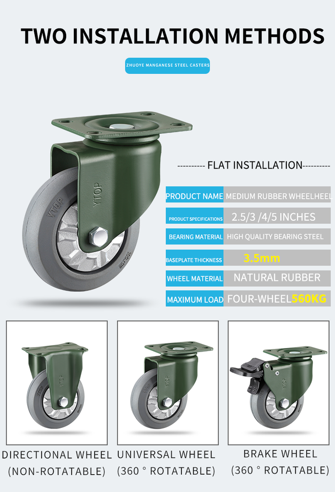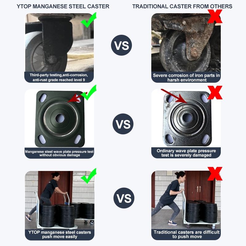 YTOP 4 "roulettes de frein pivotantes à roue fixe industrielle en caoutchouc gris haute capacité de charge roulettes en acier au manganèse