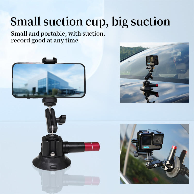 Support de voiture YUANYUJINGMI à ventouse puissante de 3 pouces, base en alliage d'aluminium, double vis 1/4\" 3/8\", déverrouillage rapide, caméra d'action