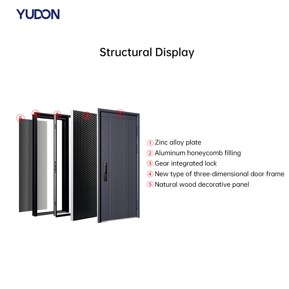 Porte d'entrée principale de sécurité YUDON DOOR série Carmen en alliage de zinc pour maison, entrée extérieure moderne pour villa, insonorisée