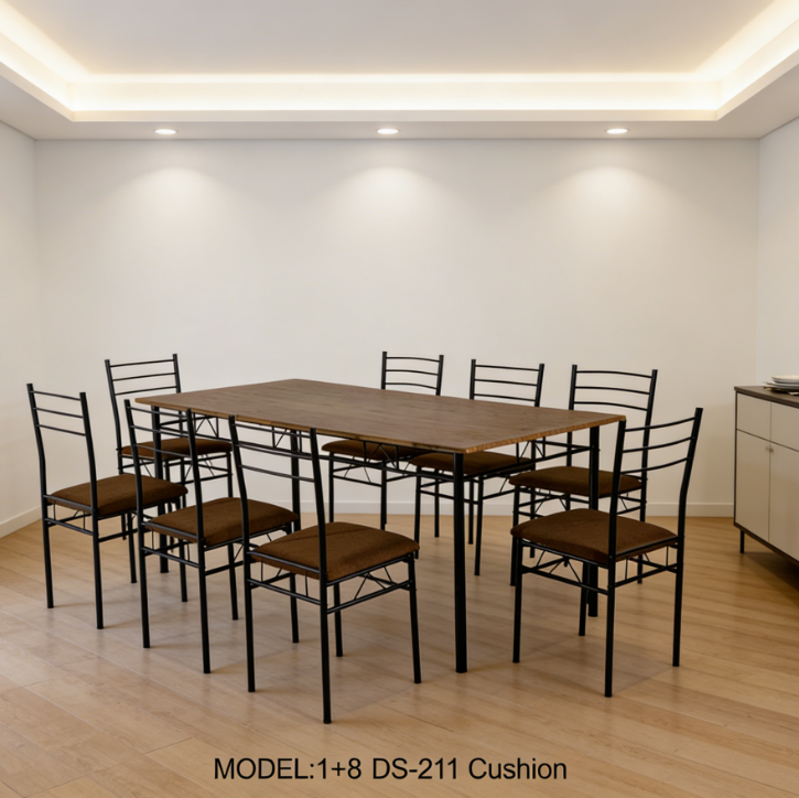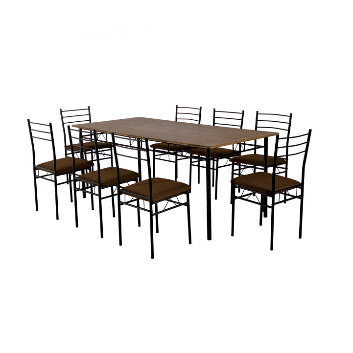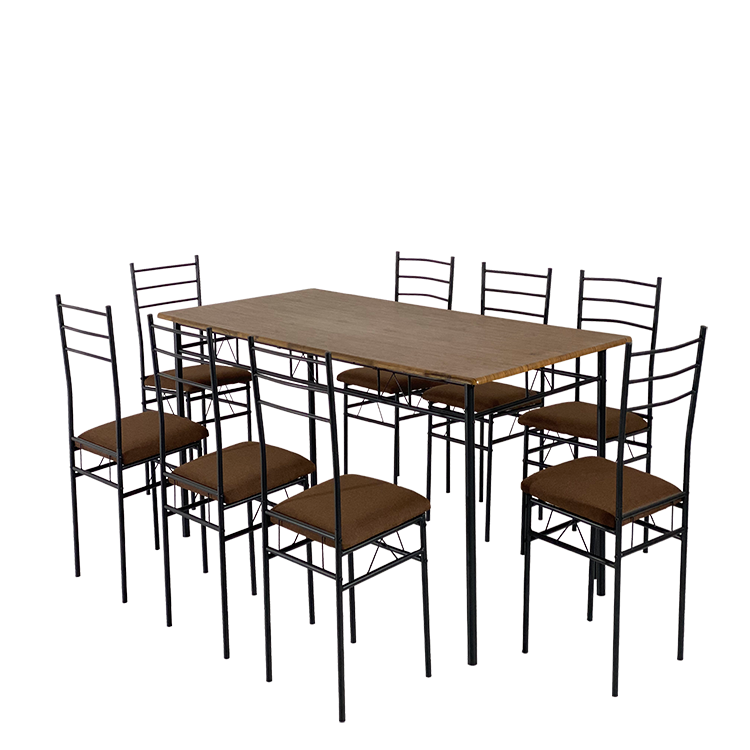 Ensemble de table à manger YUKAI 1+8, plateau de table en MDF+PVC avec sièges rembourrés en tissu pour salle à manger 1+8 DS-211