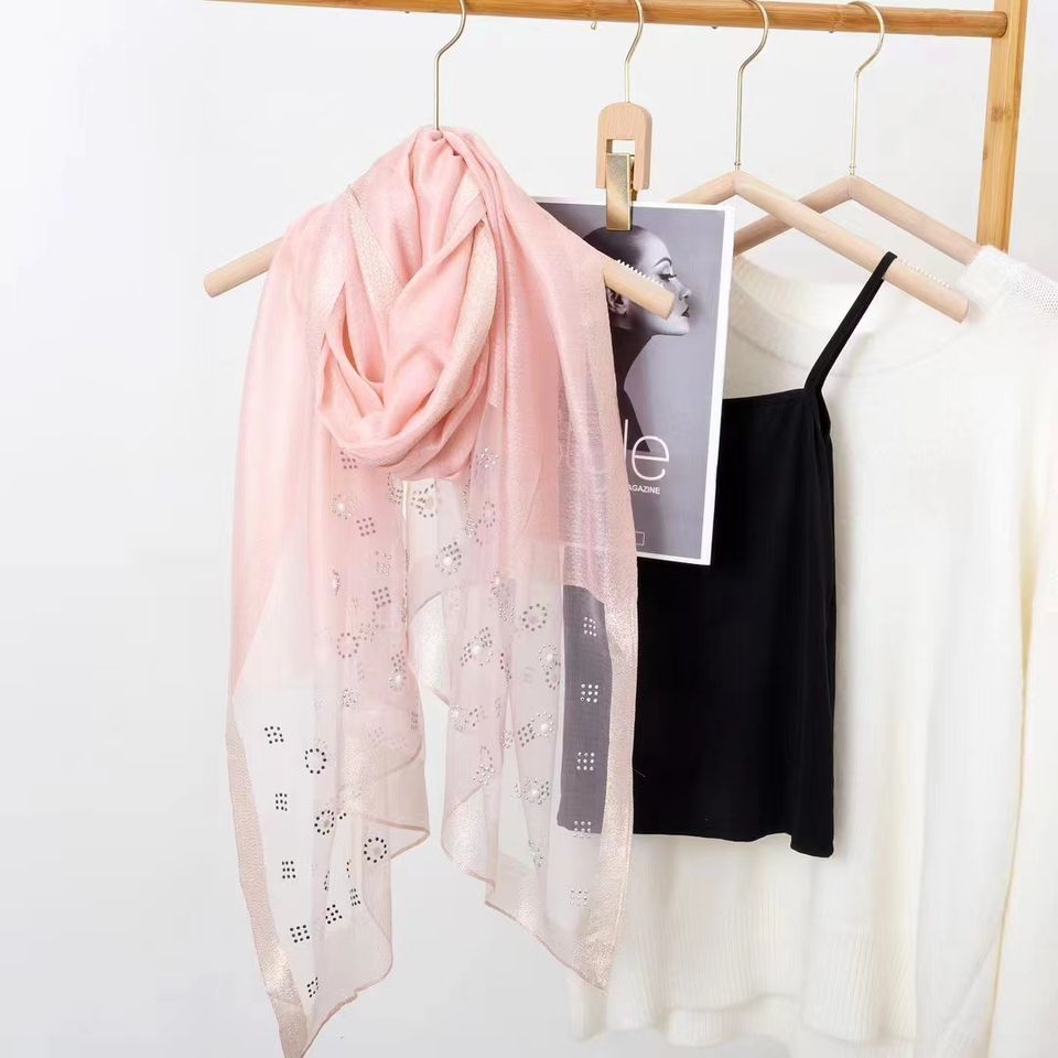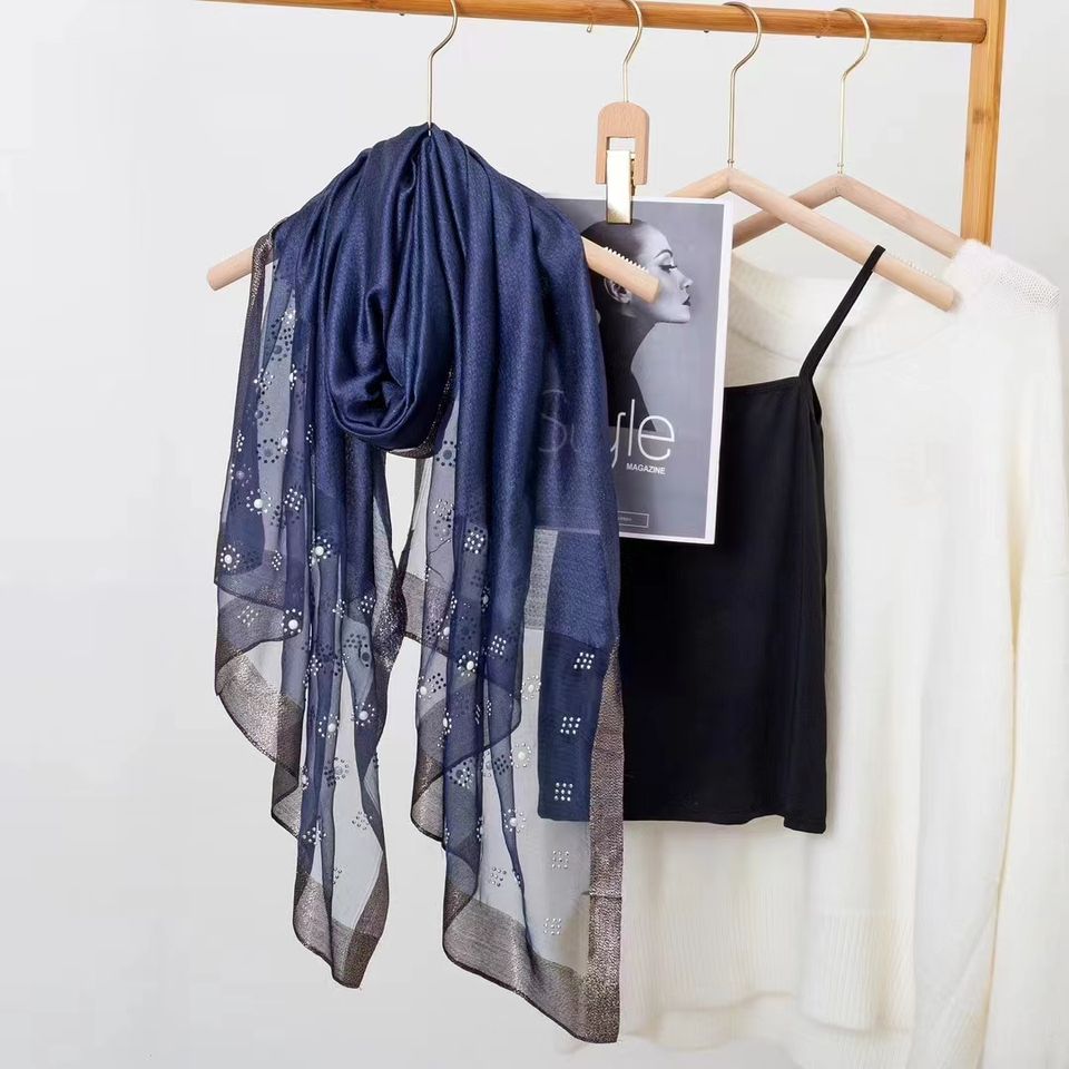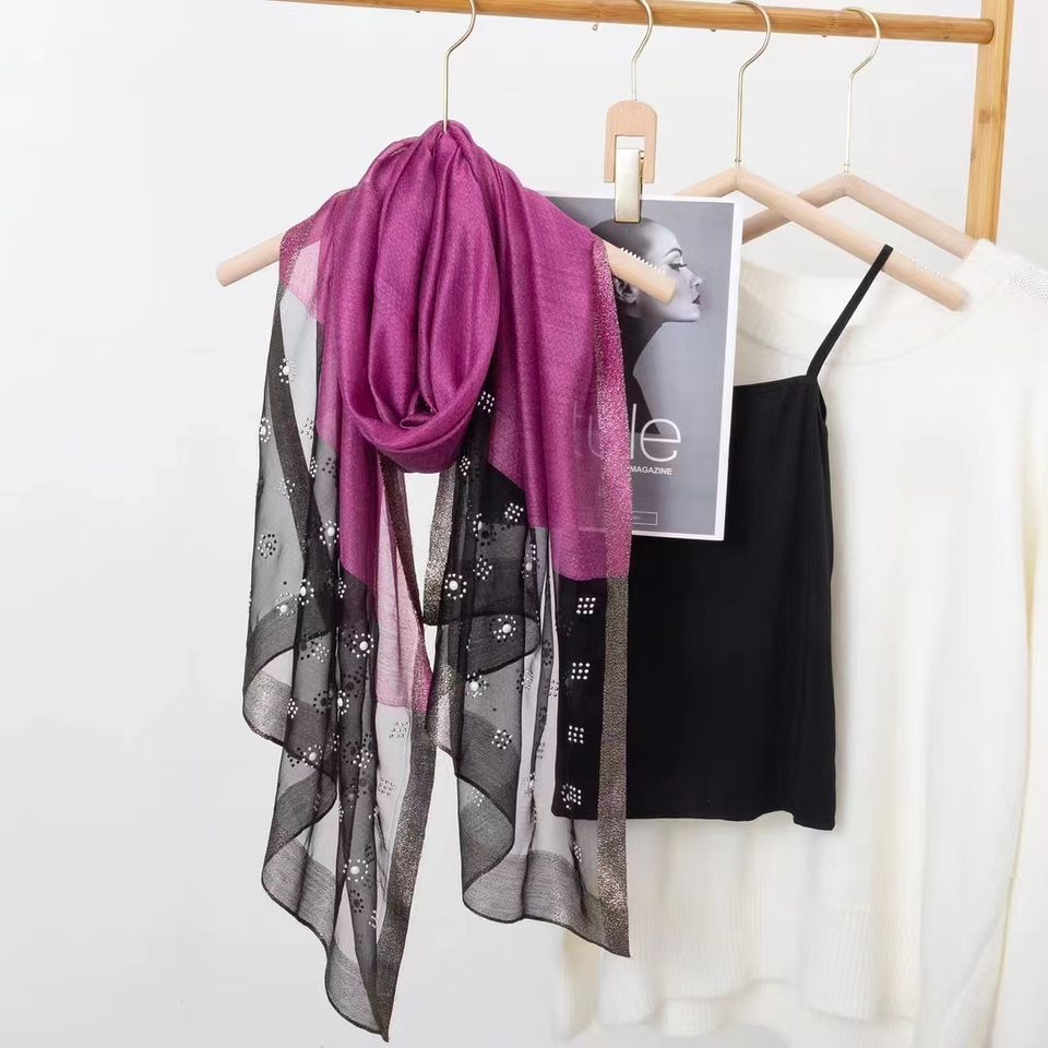 Collection Printemps-Été 2025 YX – Nouveau Foulard Long en Soie Jacquard Élégant avec Perles, Motif Diversifié, 75*185cm