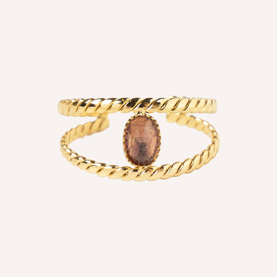 Bagues en acier inoxydable YXM R02 en pierre naturelle dorée, taille ajustable, bijoux de mode printemps-été