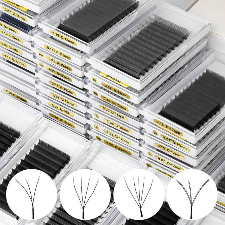 YY Lashes 3D 4D 5D Extensions de cils de forme étroite Volume ventilateurs préfabriqués faux cils YY plateaux de cils
