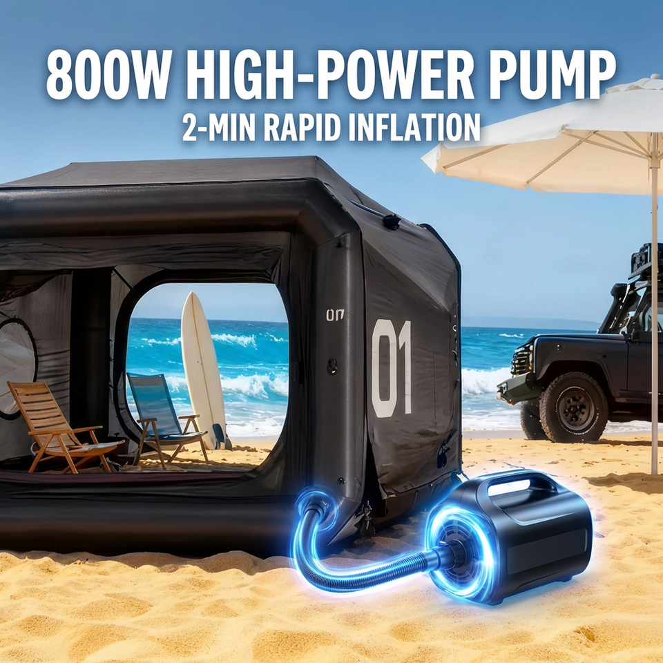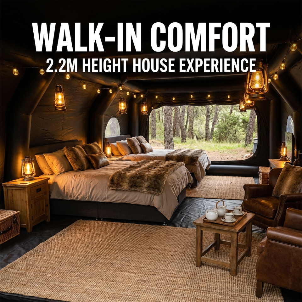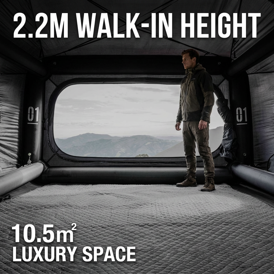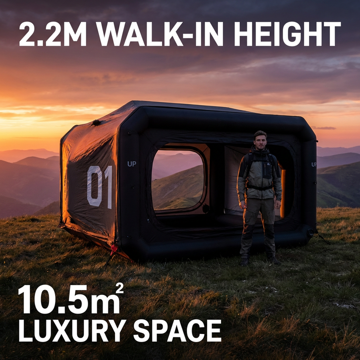 YYD 10.5 ㎡ Tente de camping gonflable 2,2 m de hauteur, 35 kg, robuste, installation en 2-3 minutes, pompe 800 W, imperméable 3000 mm, 4 saisons