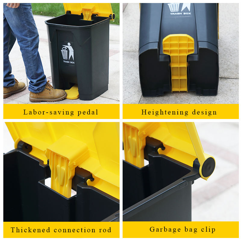 YYN Cheap Price Rectangular 50 Liter Plastic Trash Can Garbage Bins Outdoor Plastic Recycling Bins with Foot Pedal