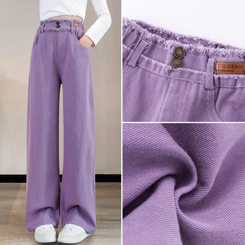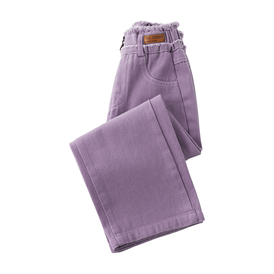 YYO Hot OEM Jeans en denim délavé respirant à taille mi-haute, coupe ample et simple, pour femmes, filles et enfants, collection Printemps-Automne