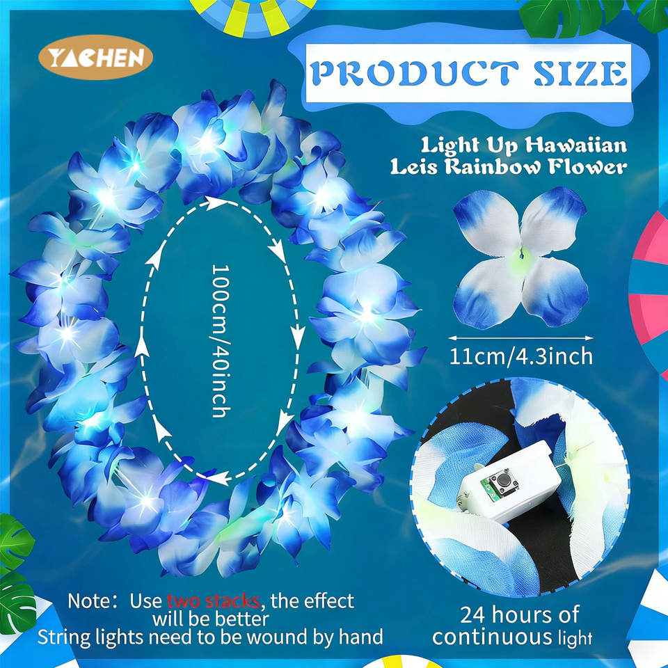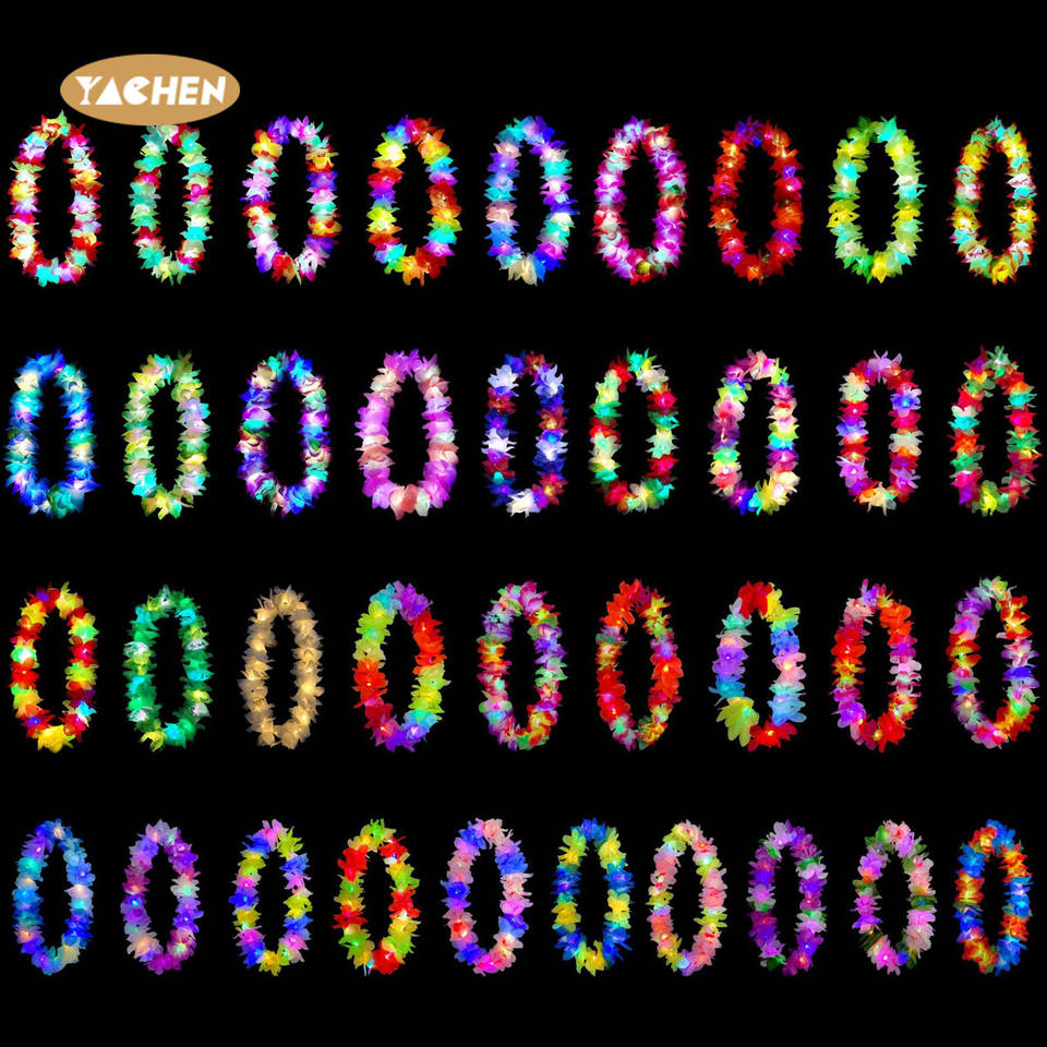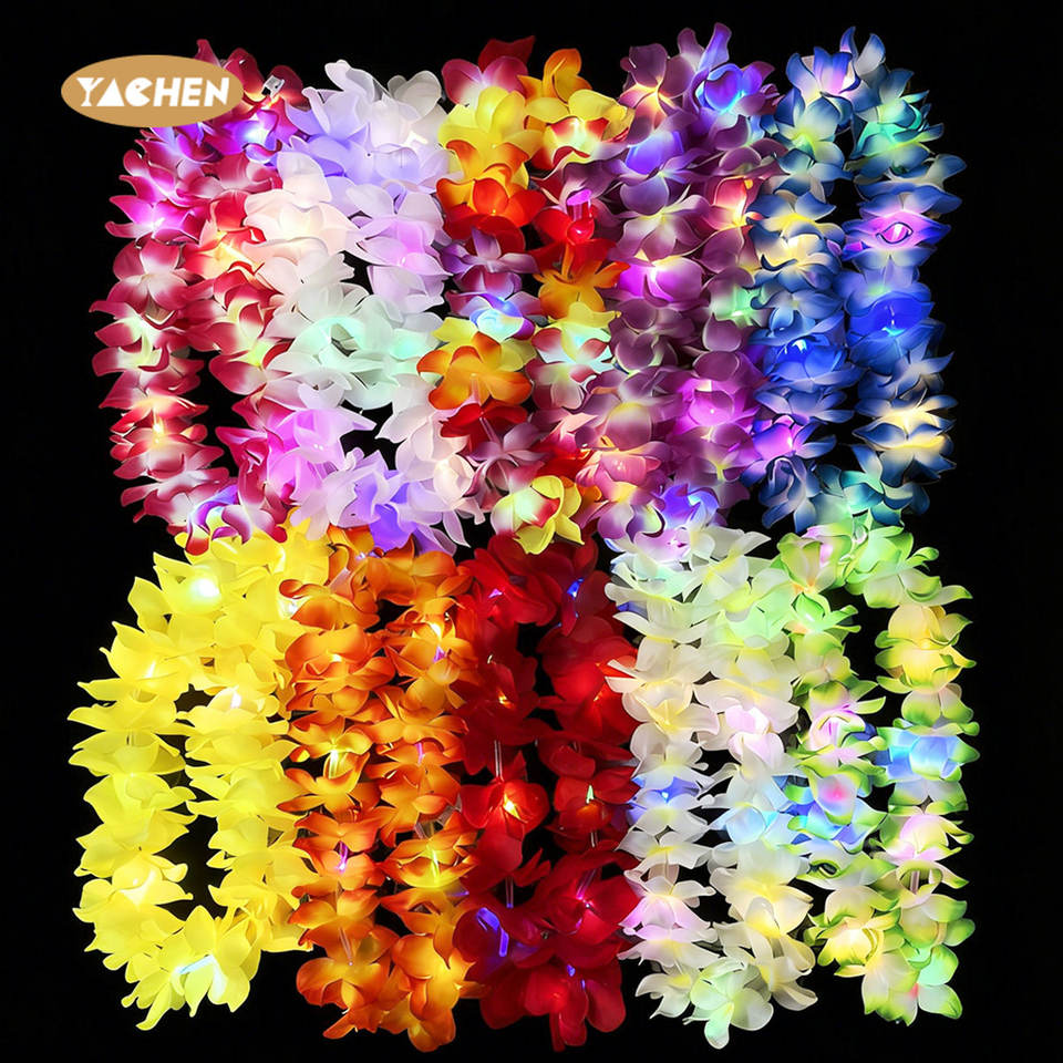 Yachen LED éclairer Hawaii fleur Leis guirlande adulte enfants Hula Luau lueur couronne collier fête d'anniversaire décoration de mariage