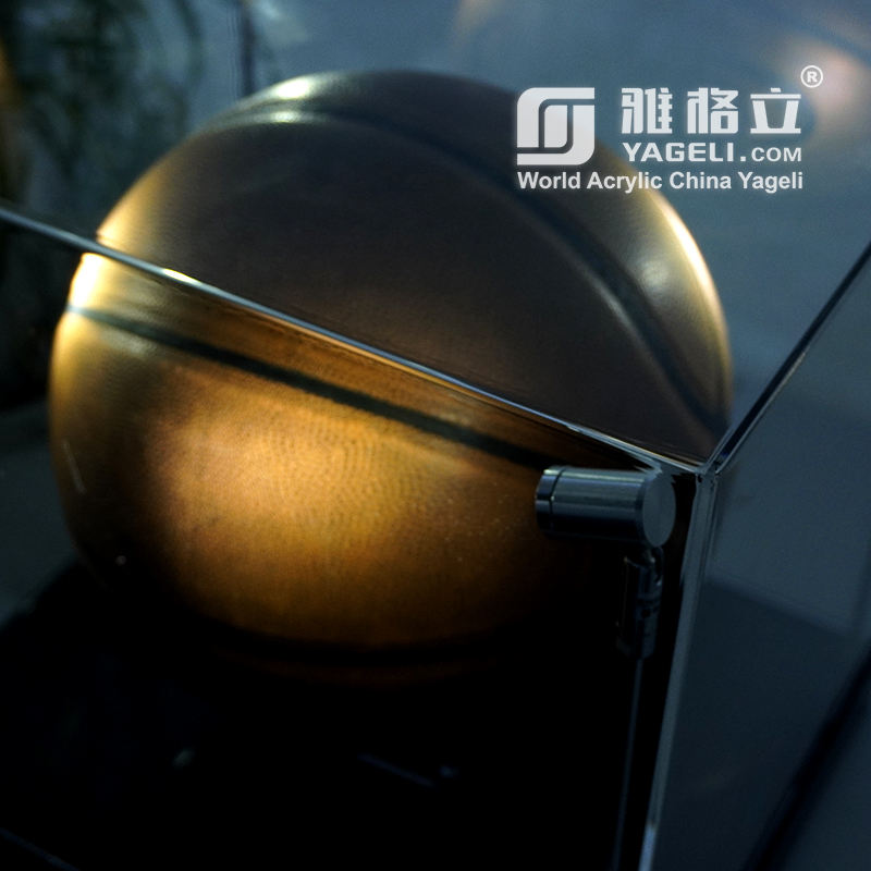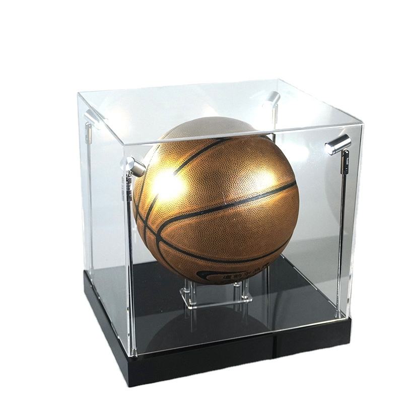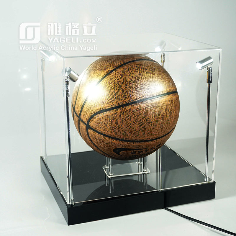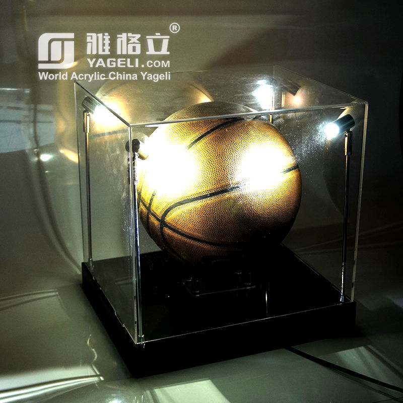 Boîte de présentation de ballon de basket en plastique PMMA transparent (Lucite) avec éclairage, modèle YGL-ASH2838, fabriquée en Chine par Yageli