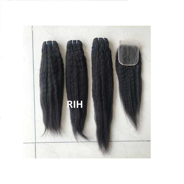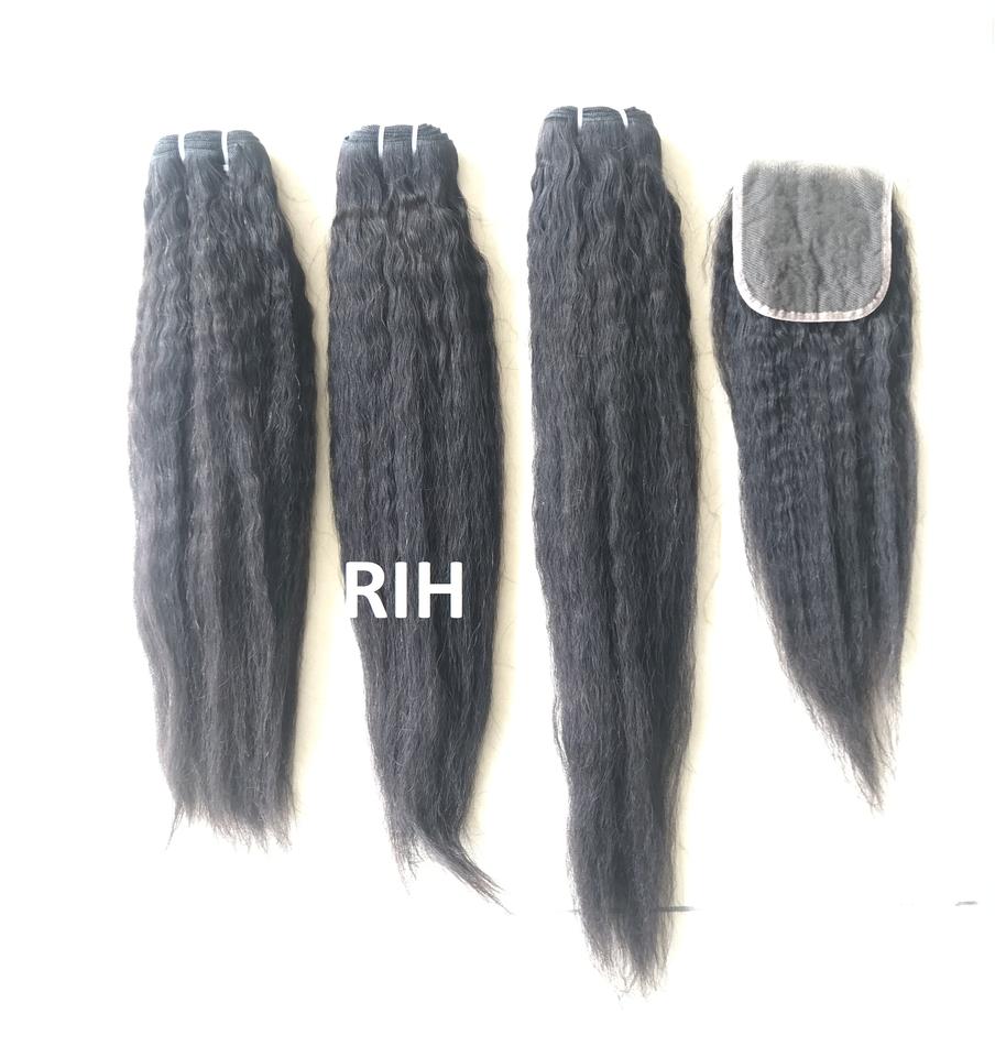 Product Name:Yaki Kinky Straight Hair Bundles With Closure Brazilian Hair Weave