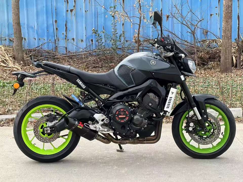 Moto Yamaha MT09 890cc, trois cylindres en ligne, refroidissement liquide, EFI, ABS, 6 vitesses, haute puissance, Hyper Naked