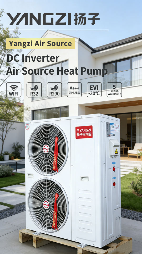 Yangzi 9KW 16KW chauffage central refroidissement pompe à eau chaude 35db R290 DC changer recteur tout-en-un air source pompe