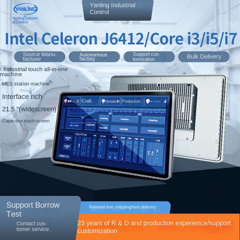 Yanling 21.5 "tablette industrielle PC intégré tout-en-un multi-touch large contrôle de la pression processeur Intel Quad Core