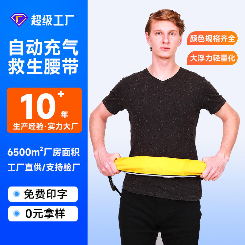 Gilet de sauvetage gonflable Yasian 75N, flottabilité manuelle et automatique, gilet de sécurité pour adulte, couleur jaune, matériau polyester