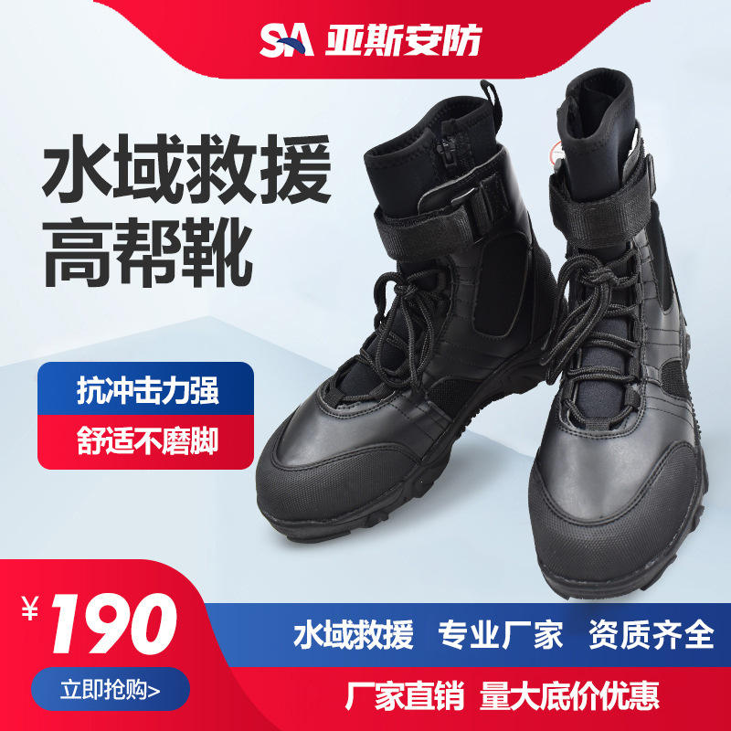 Bottes de sauvetage aquatique pour pompiers Yasyan, haute tige, antidérapantes, en cuir, équipement de protection, utilisation en extérieur