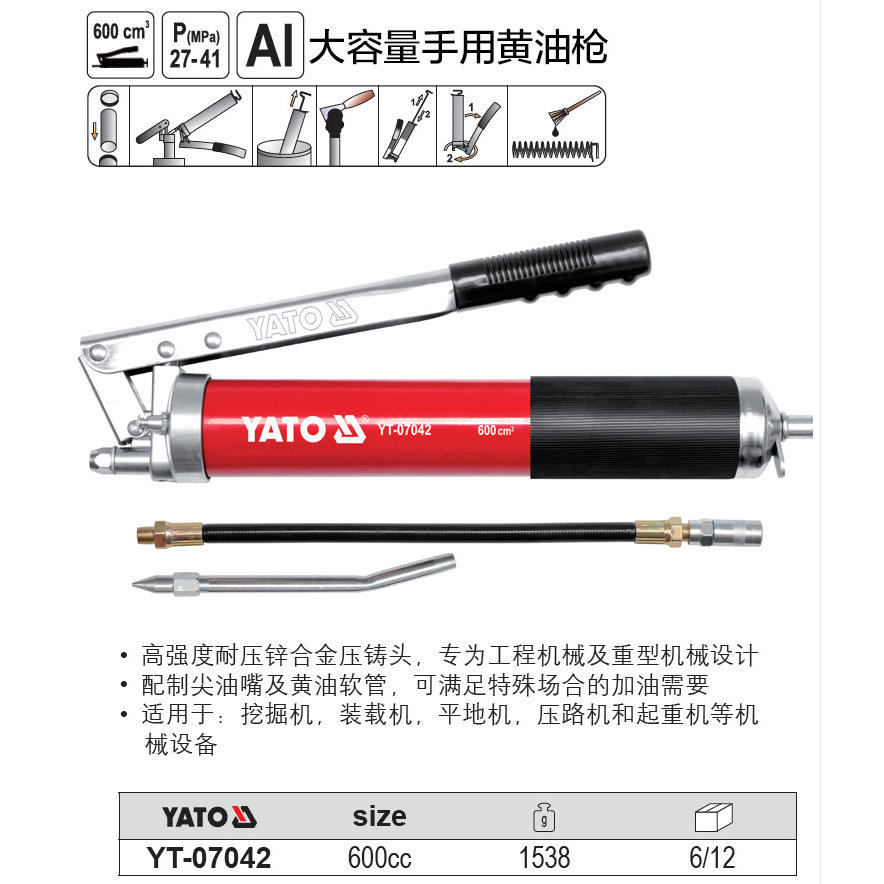 Pistolet à graisse manuel Yato grande capacité en alliage d'aluminium pour machines lourdes YT-07044