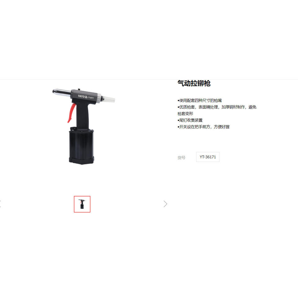 Pistolet à rivets pneumatique Yato, course de 23 mm, rivets de 1/4 pouce, corps en acier YT-36171