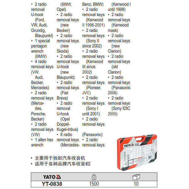 Kit de démontage radio Yato, ensemble d'outils de 52 pièces pour la réparation d'autoradios avec étui
