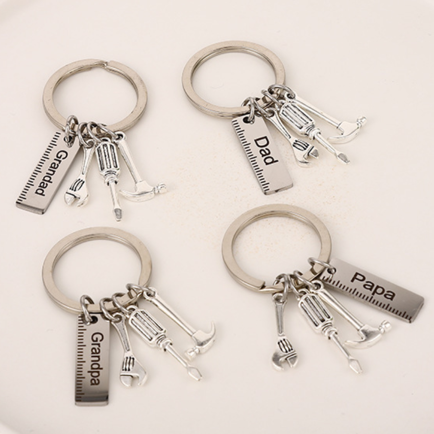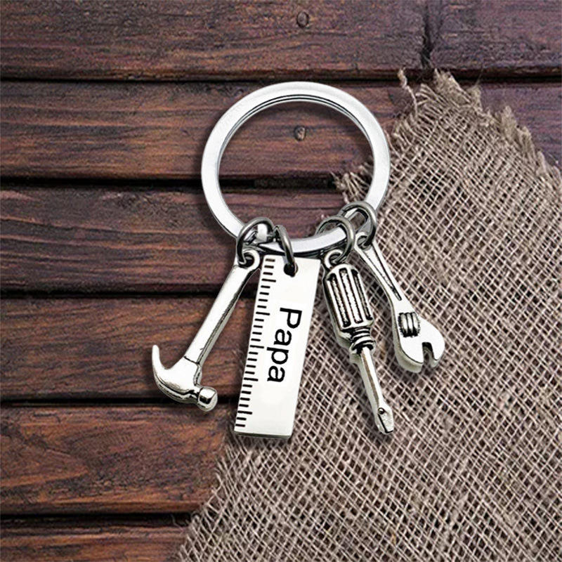 Ychon bricolage en gros porte-clés en métal personnalisé papa Papa grand-père oncle cadeaux de fête des pères petite règle tournevis trousse à outils pendentif