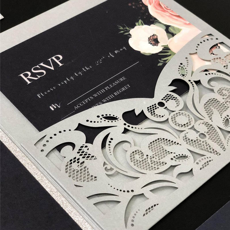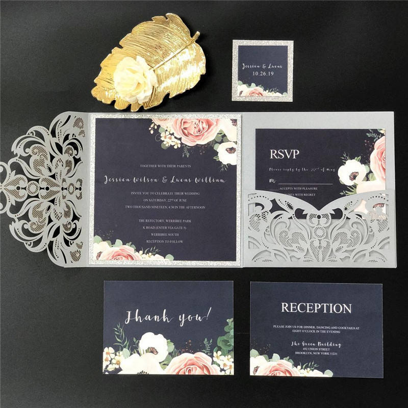 Ychon argent perlite papier découpé au laser carte d'invitation de mariage invitation carte de remerciement modèle de conception de carte d'invitation de mariage