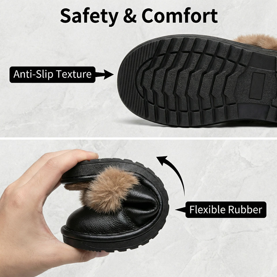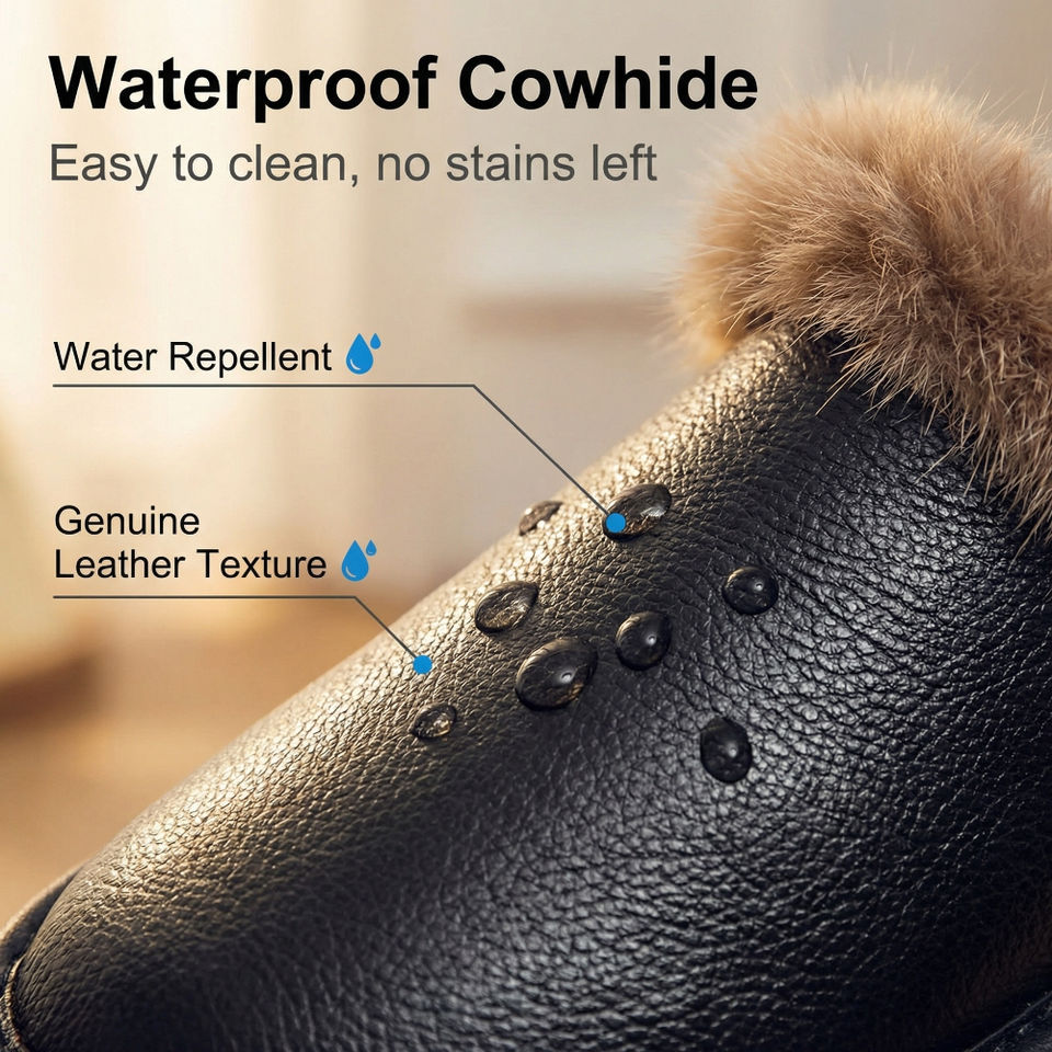 Claquettes plateforme unisexe en cuir de vachette véritable et fourrure de vison, chaudes pour l'hiver, avec amorti, imperméables, antidérapantes et respirantes